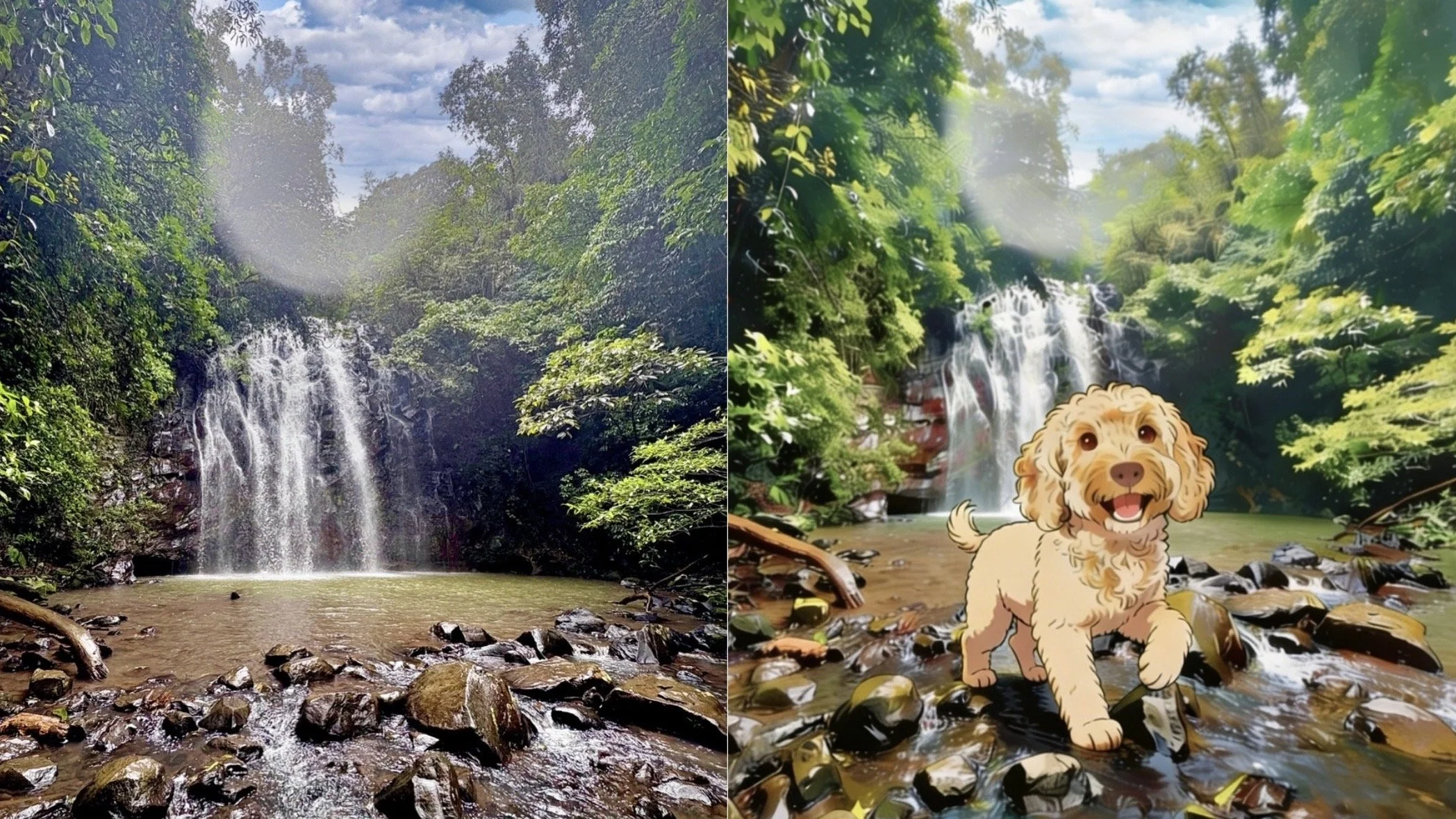 And finally, this photo was taken at Ellinjaa Falls, in Queenslands Atherton Tablelands. This was national park so no pets allowed. This is an example of me adding Archie into an illustration.