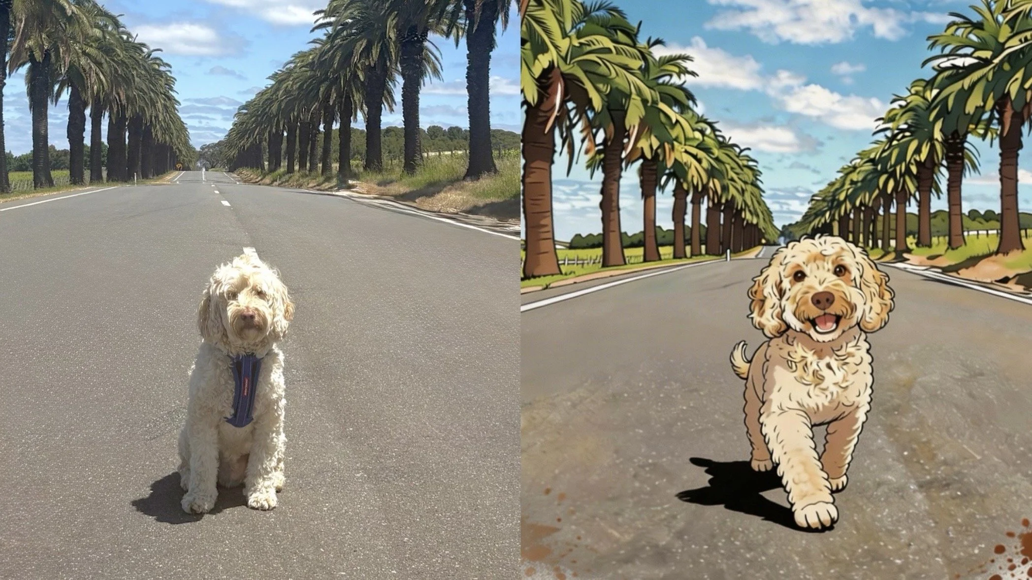Each illustration originated from personal photos and drone footage taken on our travels, then applying AI to convert each image into cartoon illustrations to accompany the story.